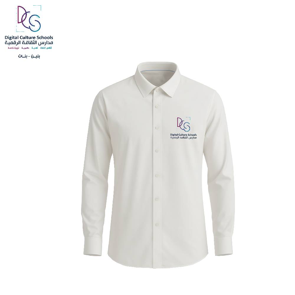 قميص لثنائي اللغة للبنات، أبيض، لجميع المراحل الدراسية