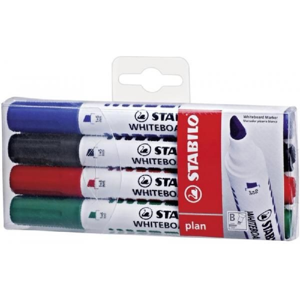 ستابيلو بلان أقلام السبورة البيضاء، رأس مشطوف، 4 ألوان