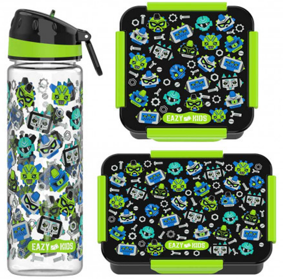 Eazy Kids Lunch Box Set and Tritan Water Bottle w/ Carry handle, Gen Z - Black, 650ml