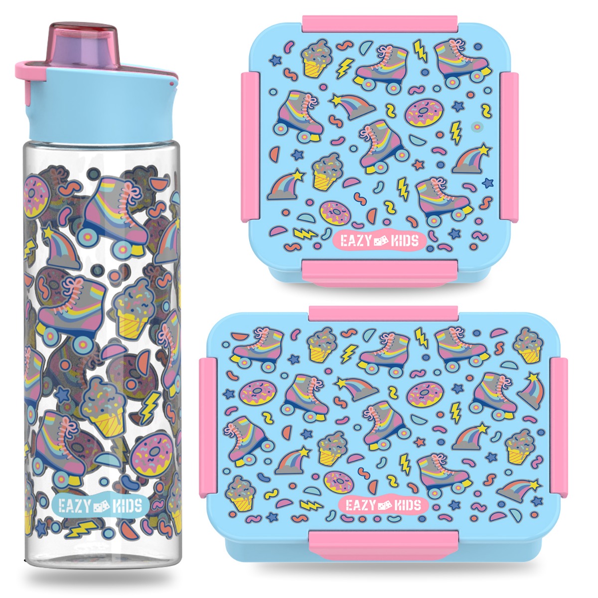Eazy Kids Lunch Box Set and Tritan Water Bottle w/ Flip Lid, Gen Z Skater - Blue, 750ml
