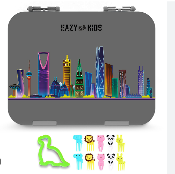 Eazy Kids 4 Compartment Bento Lunch Box-Love Saudi Grey